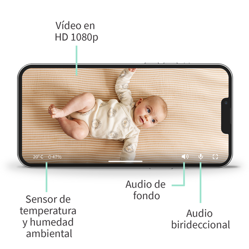 Las nuevas funciones de Owlet Cam 2 te ofrecen notificaciones de llanto, movimiento y sonido acompañadas de breves vídeos que te ayudarán a descubrir las claves menos evidentes del malestar de tu bebé. Además podrás disfrutar de la tranquilidad de saber que tu bebé se encuentra cómodo gracias a la información de los sensores de humedad y temperatura de la habitación, a la que puedes acceder en un mismo lugar con la aplicación Owlet Care.